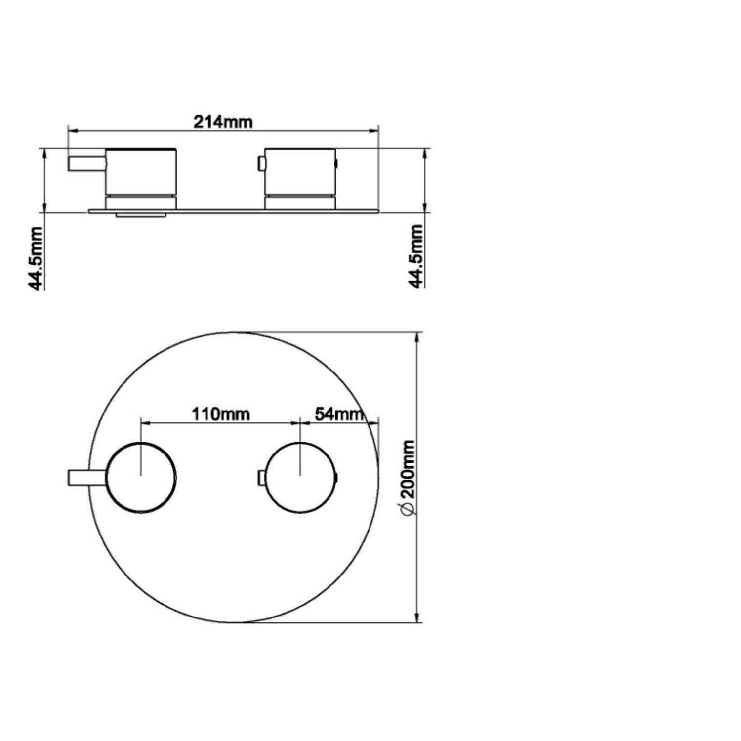 De thermostaat bestaat uit 2 bedieningen. Een bediening is voor de thermostaat en de andere gebruikt u om de kraan mee aan of uit te zetten en u kunt bepalen welke van de twee aansluitingen u wilt gebruiken. Bijvoorbeeld om de handdouche of de hoofddouche aan te zetten.