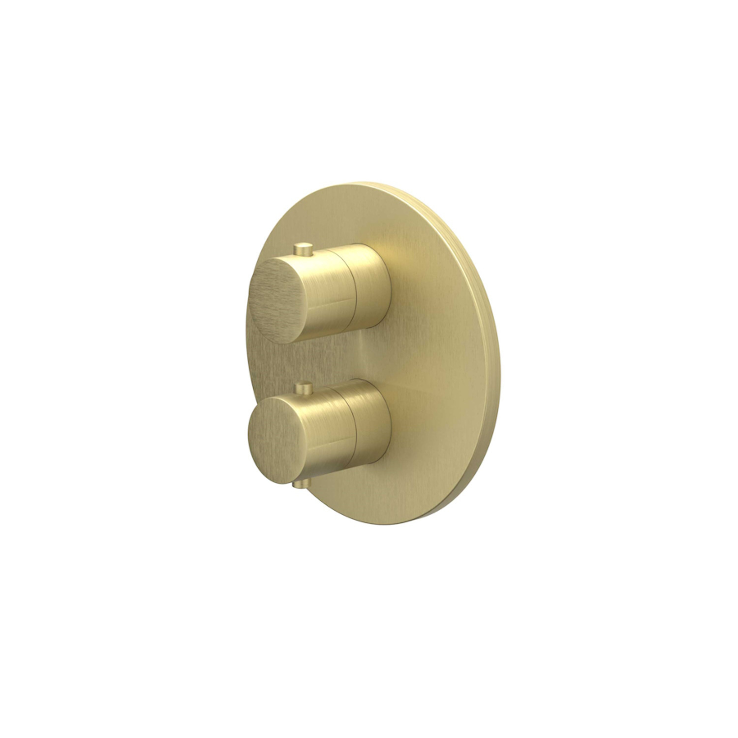 Dit afbouwdeel is van het merk IVY uit de serie Bond en is voor een inbouwthermostaat. De kraan is gemaakt van messingen heeft een rond rozet. De kleur van de kraan is Goud en heeft een geborstelde matte finish met een PVD-coating. De kraan heeft een 2-weg stop-omstel functie. Die biedt gemak in het regelen tussen verschillende wateruitgangen te schakelen.