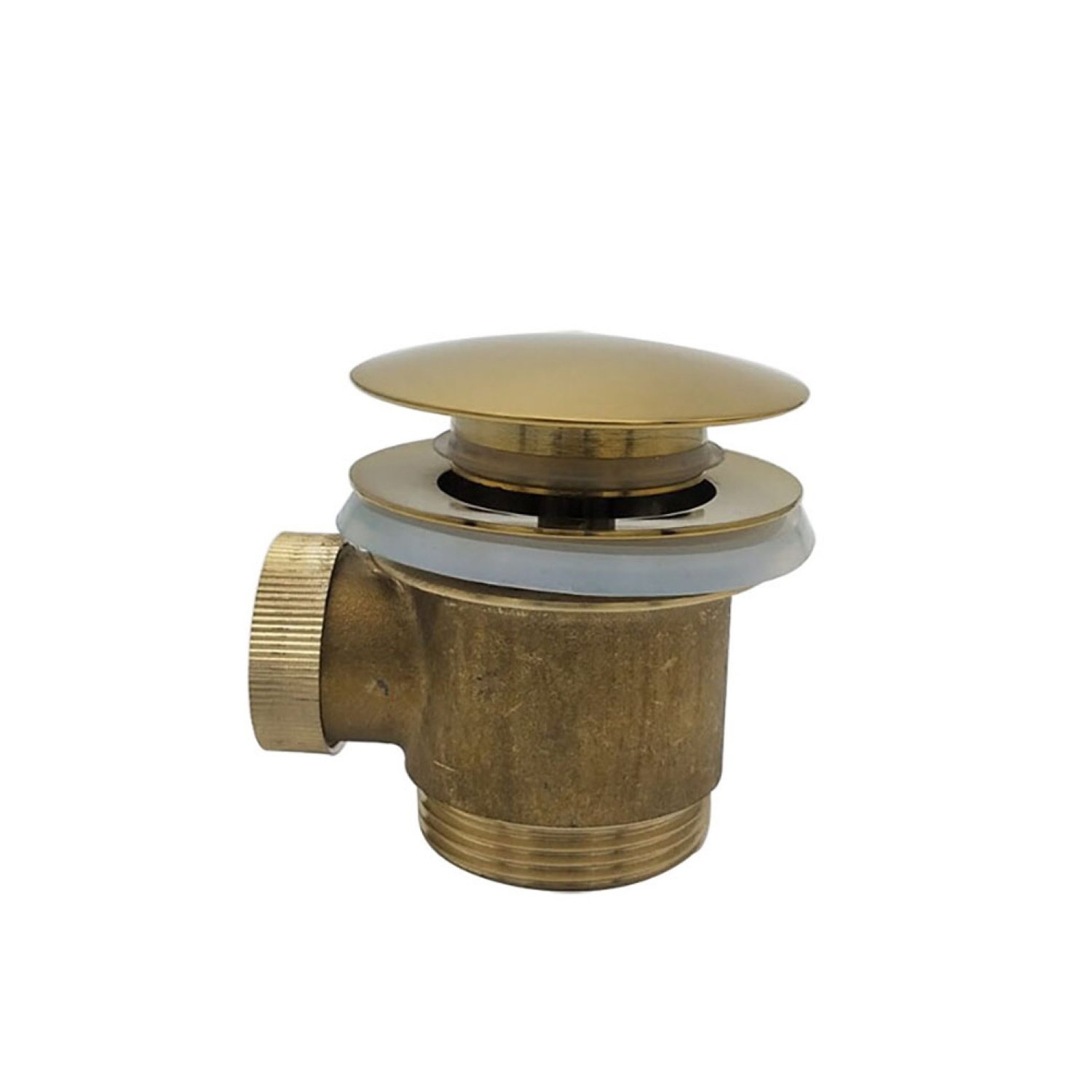 Deze afvoerplug van Boss & Wessing is geschikt voor vrijstaande baden. De afvoerplug heeft een fraaie goud geborstelde afwerking. Verder is de afvoerplug eenvoudig te bedienen door op de afdekdop van de clickwaste te drukken.