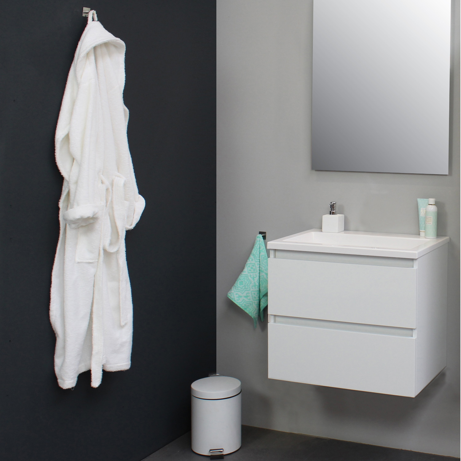 Dit prachtige badmeubel van Boss & Wessing, beschikt over hoogglans-wit kleurige onderkast met een wastafel van acryl. De wastafel wordt geleverd zonder kraangat, maar wilt u toch beschikken over een kraan, kunt u kiezen voor de aanschaf van een inbouw kraan. Het badmeubel wordt geleverd inclusief spiegel. De afmetingen van het badmeubel zijn: breedte 60 cm, hoogte 55 cm en een diepte van 46 cm. De set is in meerdere afmetingen en verschillende kleuren beschikbaar.