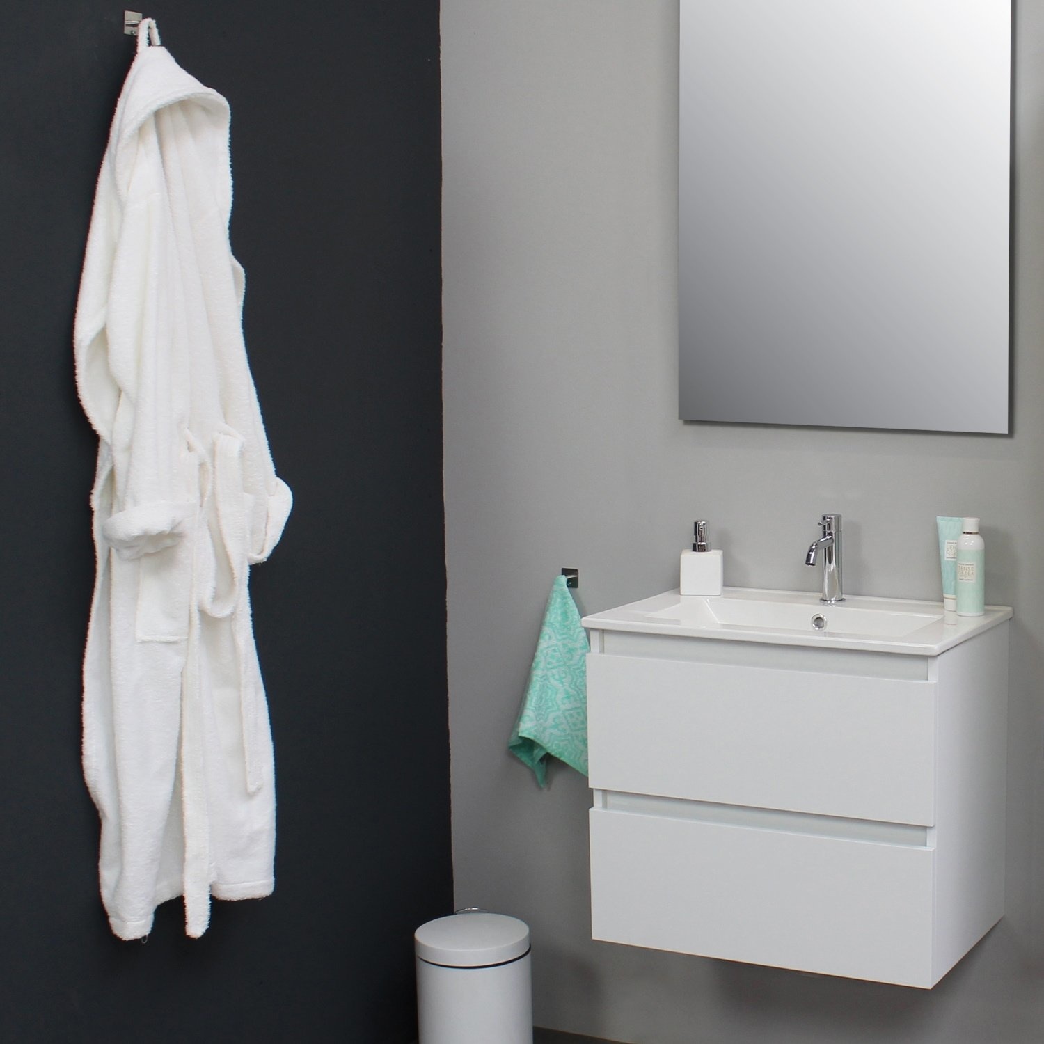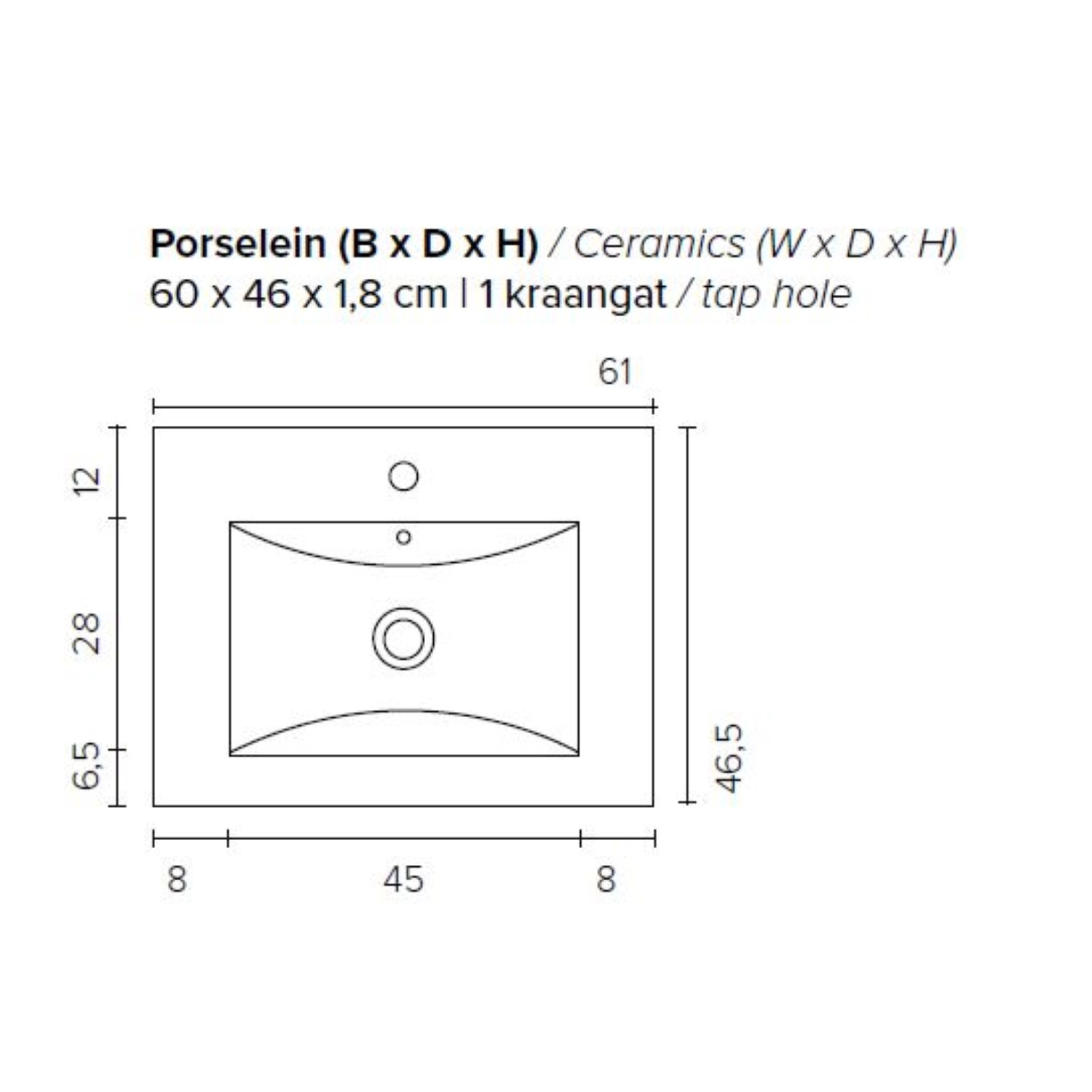 Dit prachtige badmeubel van Boss & Wessing, beschikt over een wit kleurige onderkast met een wastafel van porselein. De wastafel wordt geleverd met kraangat, dus heeft u de optie om een opbouwkraan toe te voegen aan uw wastafel. Het voordeel van porselein is, is dat het harder is dan ander soort aardewerk. Daarnaast ook een stuk witter, waardoor het zorgt voor een betere uitstraling in de badkamer. Het badmeubel heeft een breedte van 60 cm, een hoogte van 55 cm en een diepte van 46 cm. De set is in meerdere afmetingen en verschillende kleuren beschikbaar.