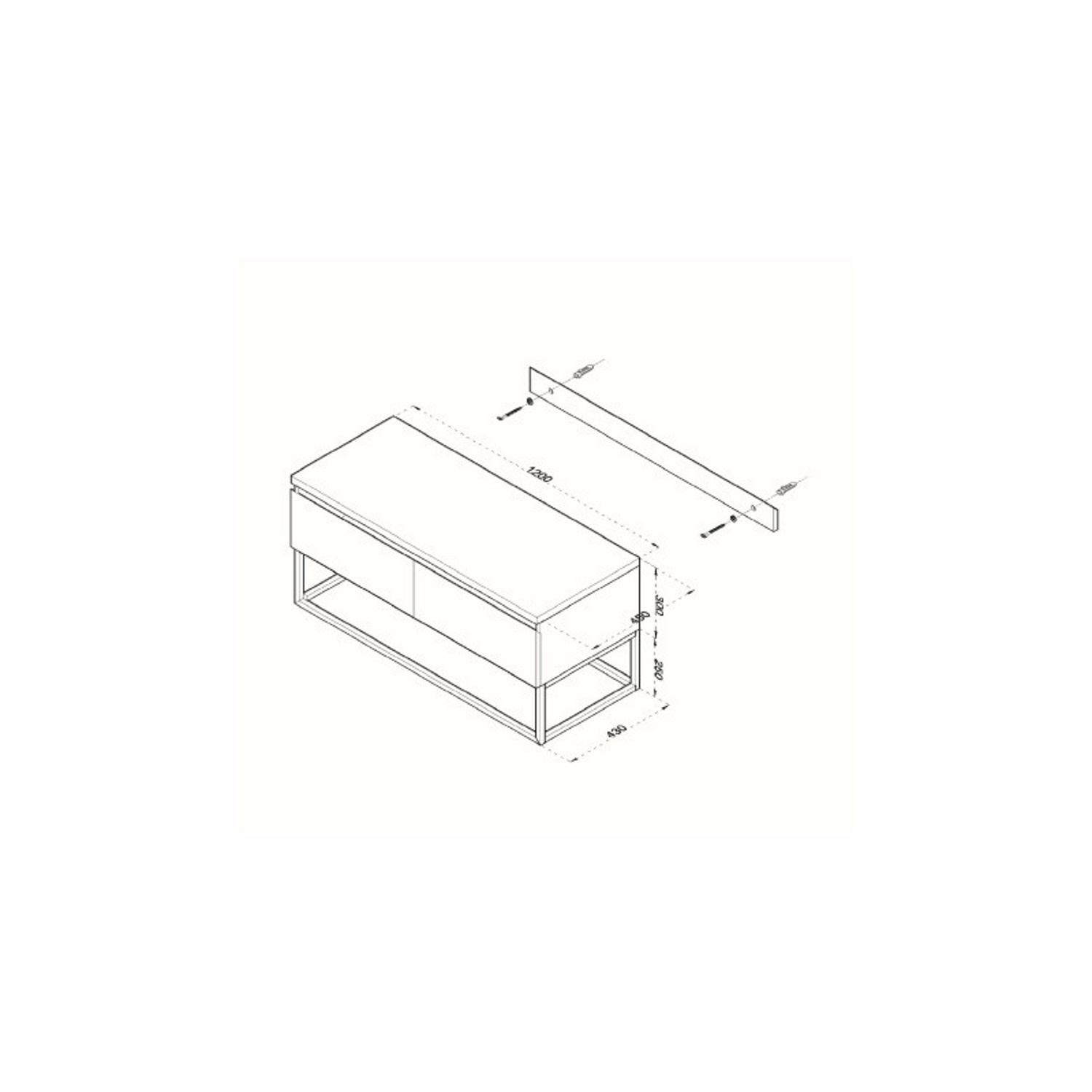 Het badmeubel heeft een breedte van 120 cm, een diepte van 46 cm en een hoogte van 55 cm. De eiken onderkast wordt geleverd met een twee softclose ladegeleiders waardoor de lades nooit hard zal dichtvallen. De strakke look van het meubel worden benadrukt door de greeploze lades. Onder de lades bevindt zich een plateau waar u met gemak uw handdoeken kunt opbergen. Het badmeubel komt zonder waskom.