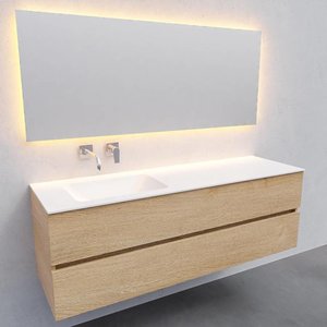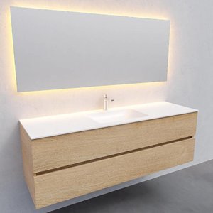 Badkamermeubel Solid Surface AQS Oslo 150x46 cm Midden Wood Washed Oak (0 kraangaten)