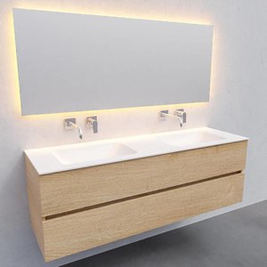 Badkamermeubel Solid Surface AQS Oslo 150x46 cm Dubbel Wood Washed Oak (0 kraangaten)