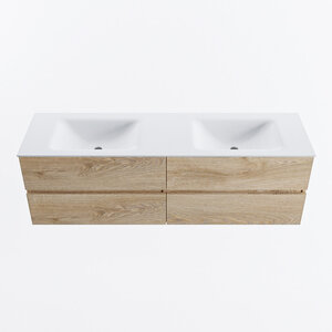 MONDIAZ VICA 160cm badmeubel onderkast Washed Oak 4 lades. Wastafel CLOUD dubbel 2 kraangaten, kleur Talc.