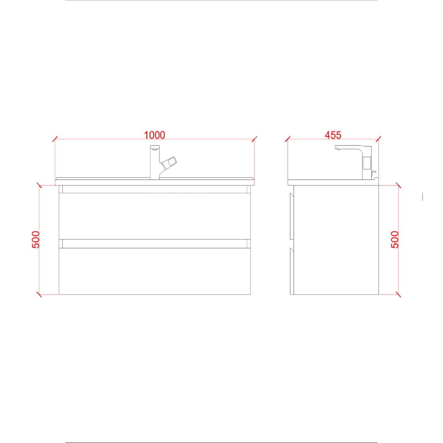 De wastafel is voorzien van een spoelbak die is uitgerust met een overloop. Ook bevindt zich achter deze spoelbak een kraangat waar u een kraan naar keuze in kunt monteren. Zo kunt u dit meubel volledig naar eigen wens inrichten! De wastafel heeft een dikte van slechts 1,9 cm waardoor deze nauwelijks ruimte in beslag neemt.