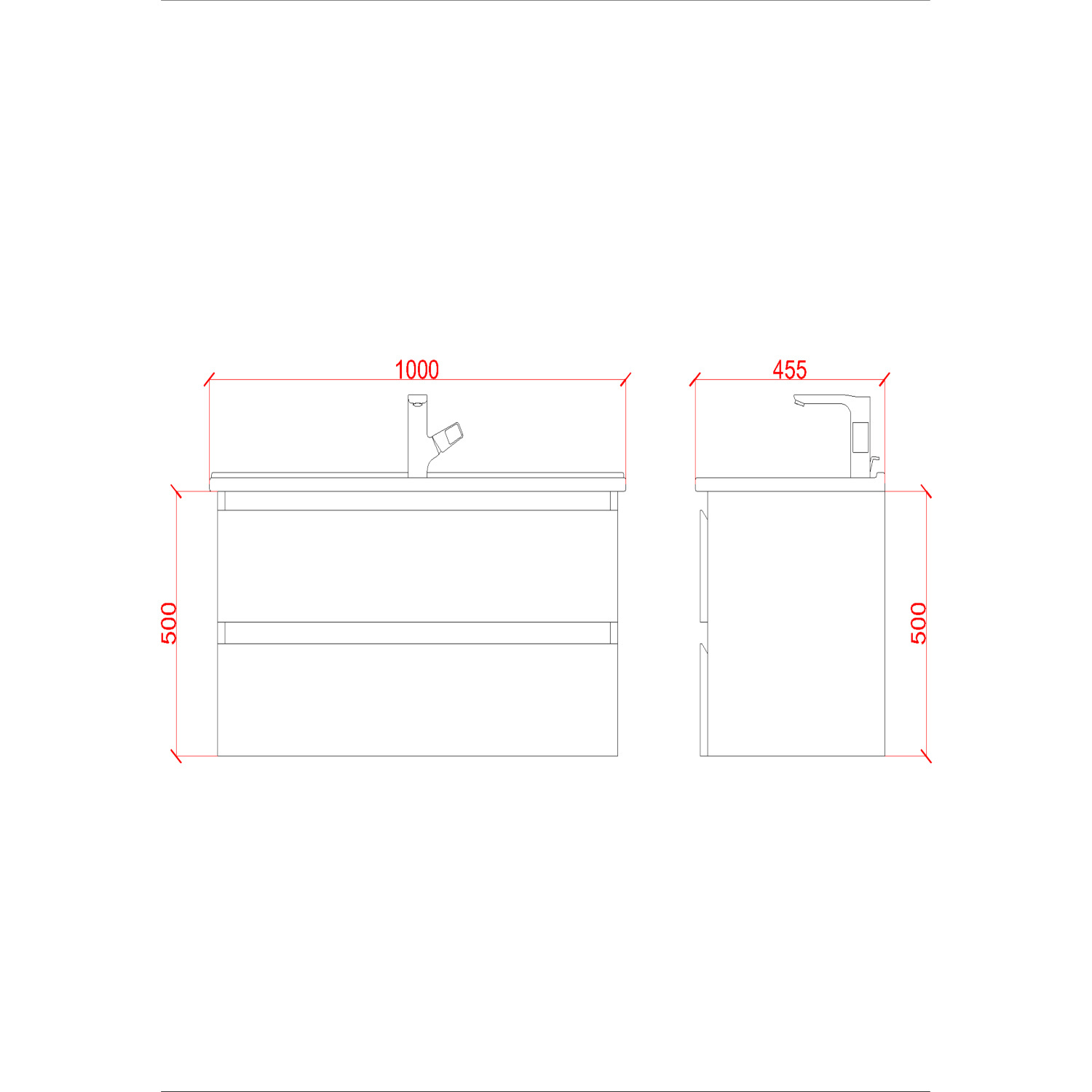 De wastafel is voorzien van een spoelbak die is uitgerust met een overloop. Ook bevindt zich achter deze spoelbak een kraangat waar u een kraan naar keuze in kunt monteren. Zo kunt u dit meubel volledig naar eigen wens inrichten! De wastafel heeft een dikte van slechts 1,9 cm waardoor deze nauwelijks ruimte in beslag neemt.