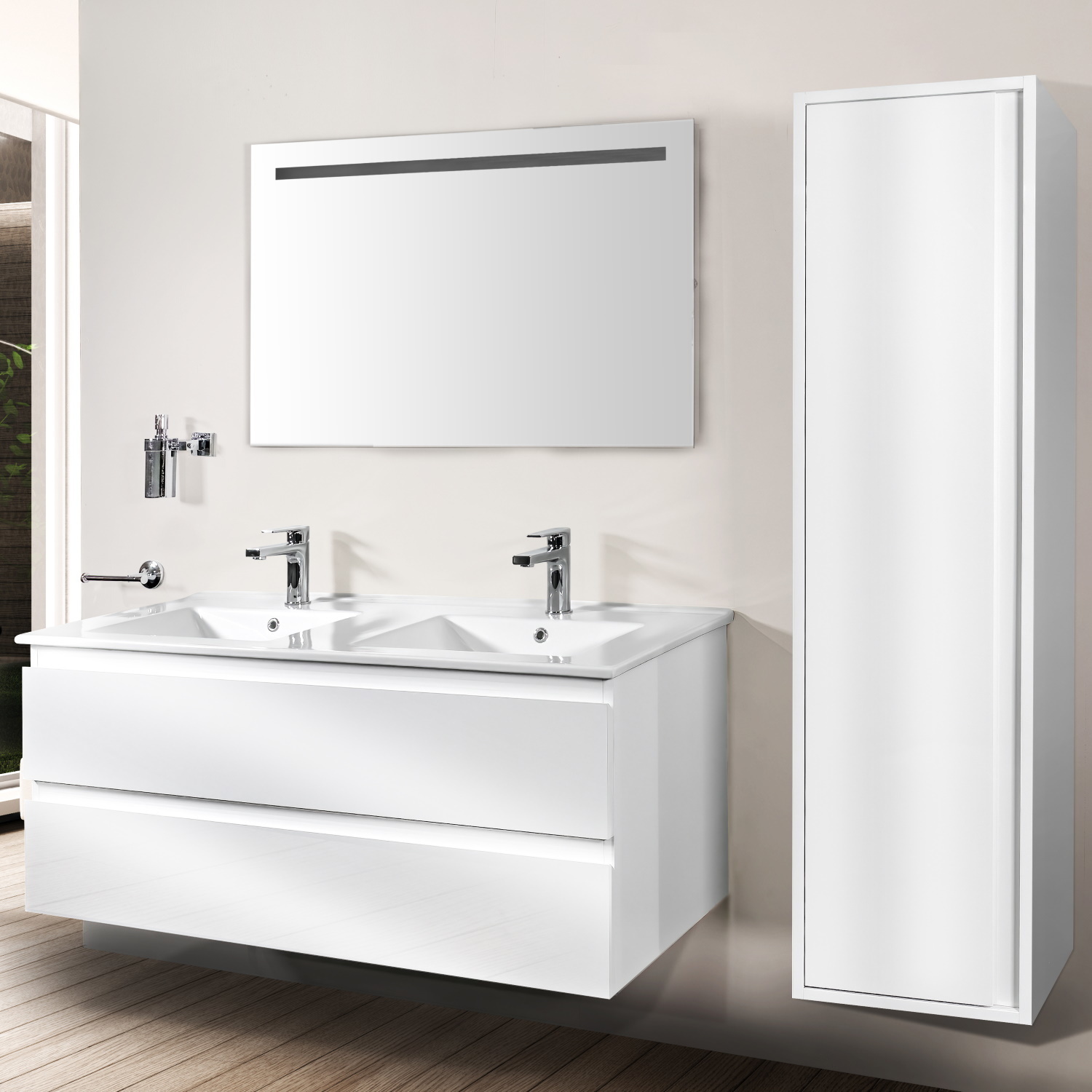 De set maakt u compleet door een bijpassende kolomkast en badkamerspiegel aan uw bestelling toe te voegen voor een meerprijs. De kolomkast heeft eveneens een afwerking in de kleur mat wit en is leverbaar in hoogtes van 135 en 160 cm. Tot slot heeft u de keuze uit drie verschillende spiegels die qua afmeting overeen komen met de onderkast en de wastafel.