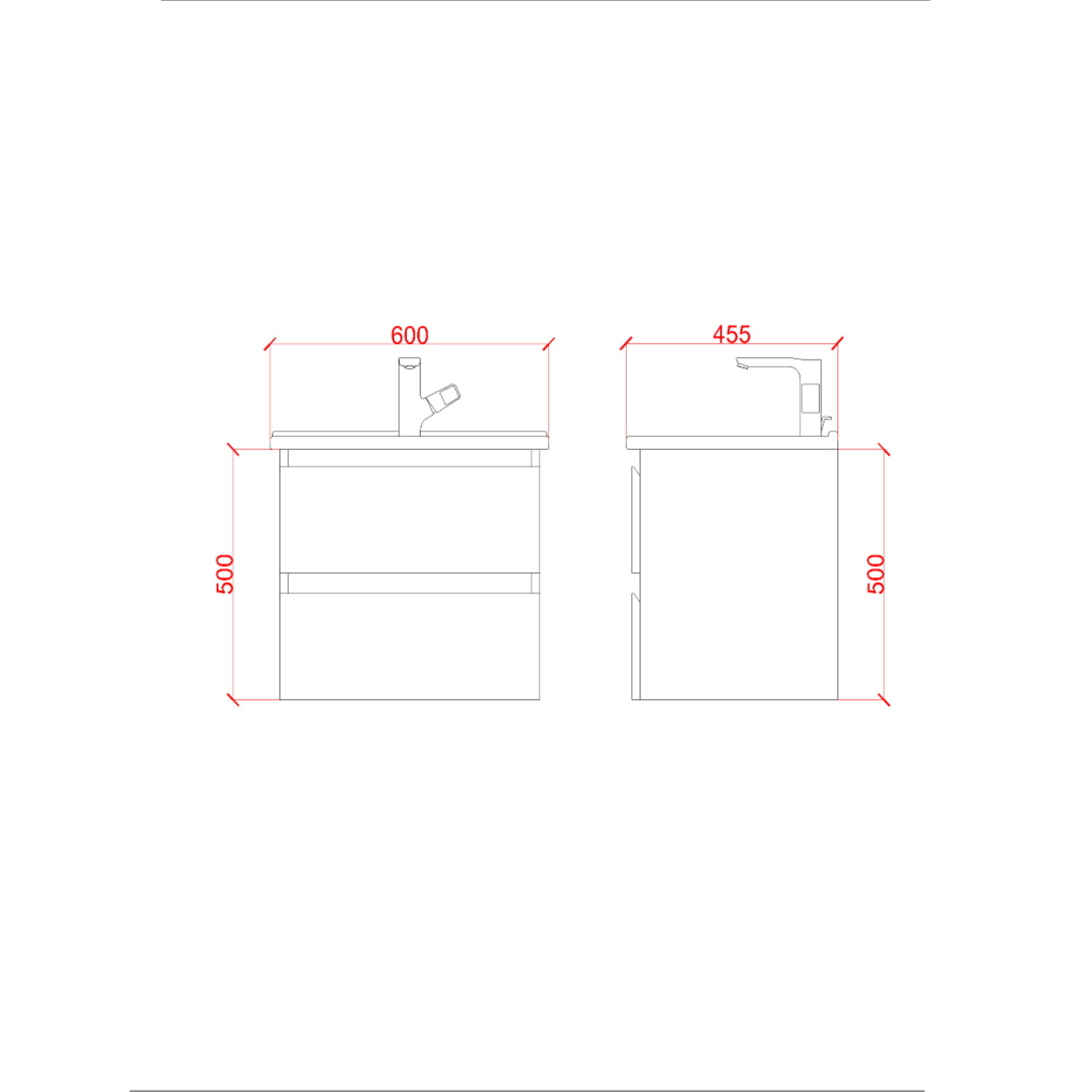 De wastafel is voorzien van een spoelbak die is uitgerust met een overloop. Ook bevindt zich achter deze spoelbak een kraangat waar u een kraan naar keuze in kunt monteren. Zo kunt u dit meubel volledig naar eigen wens inrichten! De wastafel heeft een dikte van slechts 1,9 cm waardoor deze nauwelijks ruimte in beslag neemt.