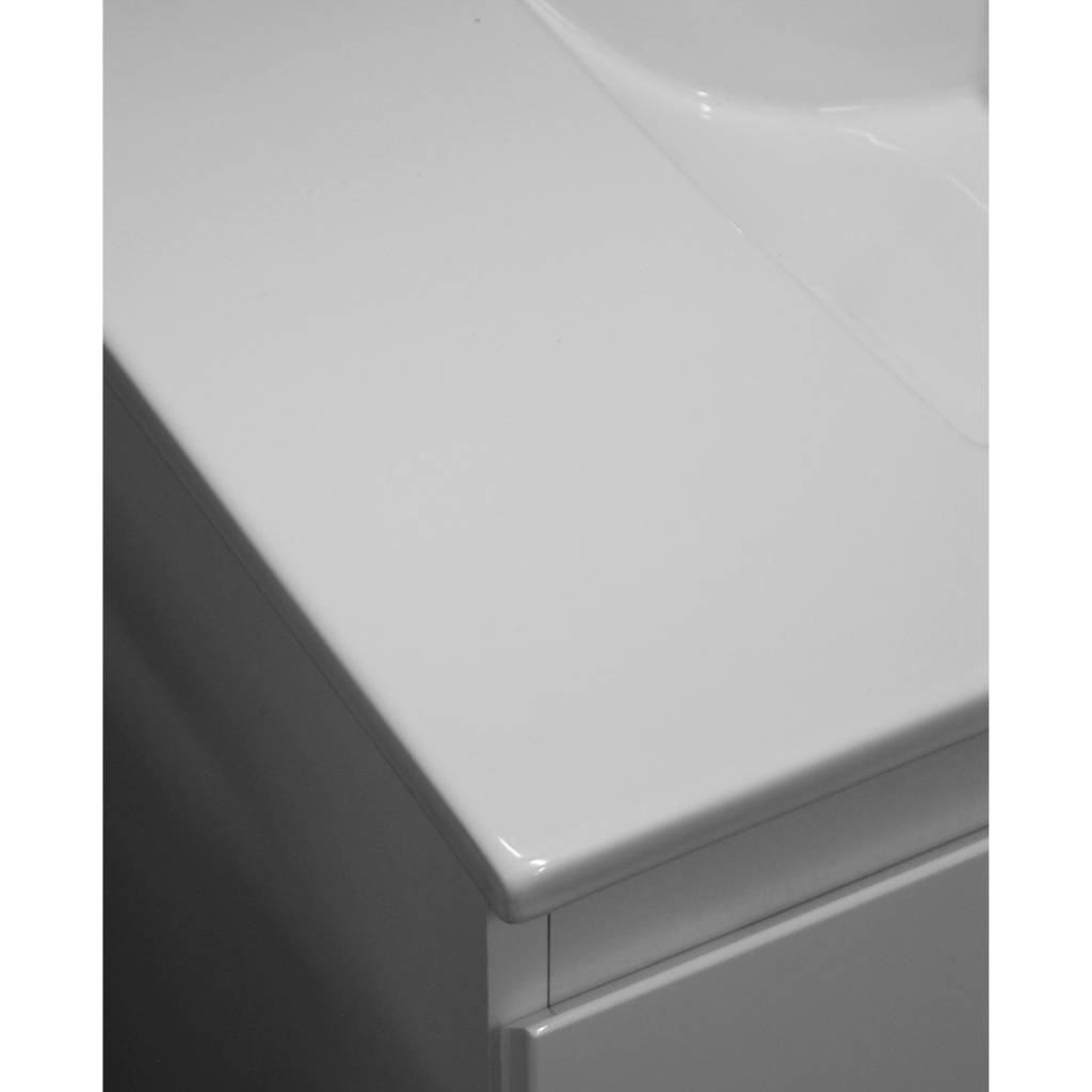 De wasbak is gemaakt van porselein. Porselein is een soort keramiek alleen heeft het een andere samenstelling. Porselein is hard, doorschijnend en niet poreus. Daarnaast verkleurd porselein nauwelijks omdat het weersen hittebestendig is. Ook goed om te weten is dat porselein geen elektriciteit geleidt en dat is voor een porseleinen wastafel toch wel prettig in de badkamer. Daarnaast heeft het meubel een kraangat en overloop.