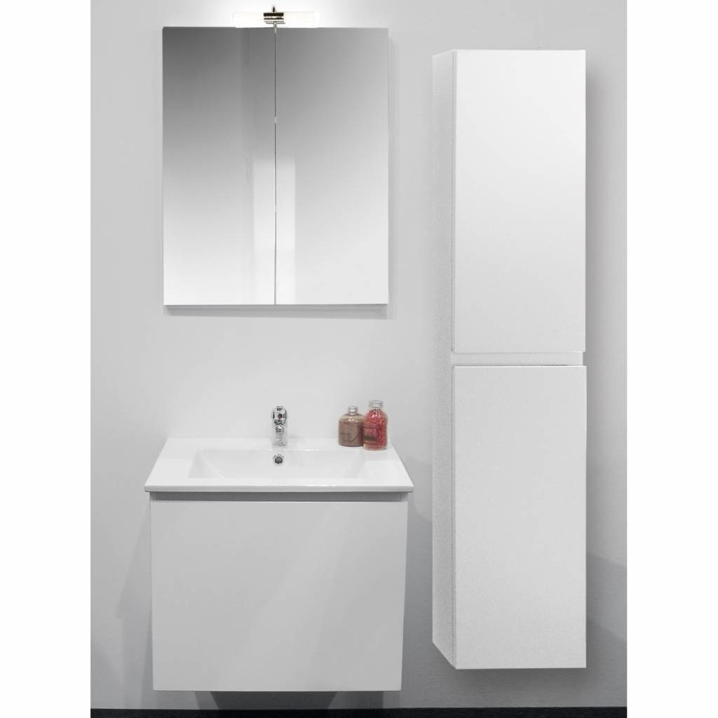 De spiegelkast is ook gemaakt van melamine en afgewerkt met een hoogglans witte laklaag. De deuren hebben een enkelzijdige spiegel van 60x73x15.5cm. De mooie spiegelkast is voorzien van opbouw verlichting dat mooi naar beneden schijnt. Zo kunt u alles goed zien in de spiegel. Verlichting dat er bij zit is een IP44, LED lamp 6W.