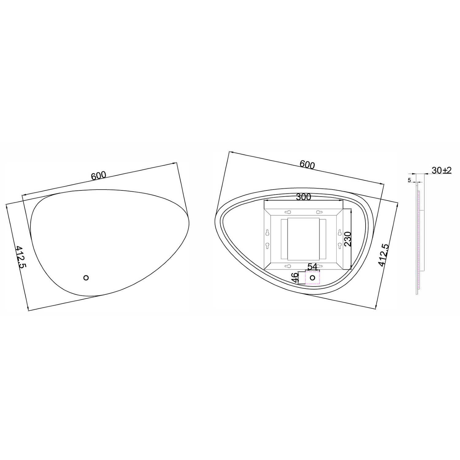 Verder heeft de spiegel een organisch vorm met de afmeting 60 bij 41.3 cm.