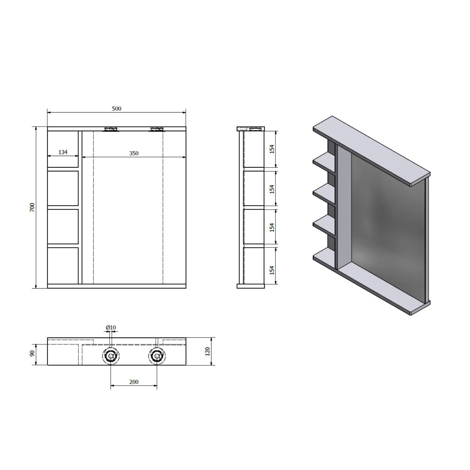 Badkamerspiegel Sapho Korin 52x70x12 cm Incl. LED Verlichting en Planken