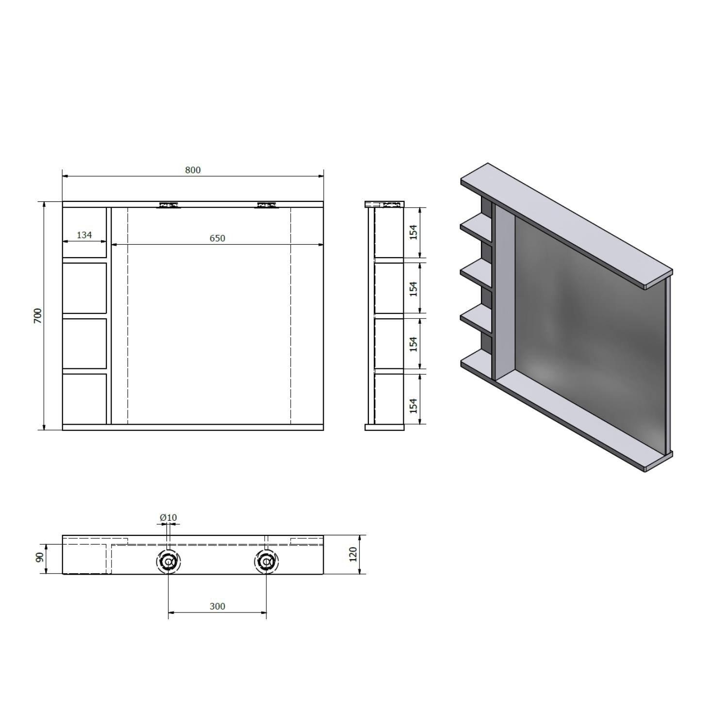 Badkamerspiegel Sapho Korin 80x70x12 cm Incl. LED Verlichting en Planken