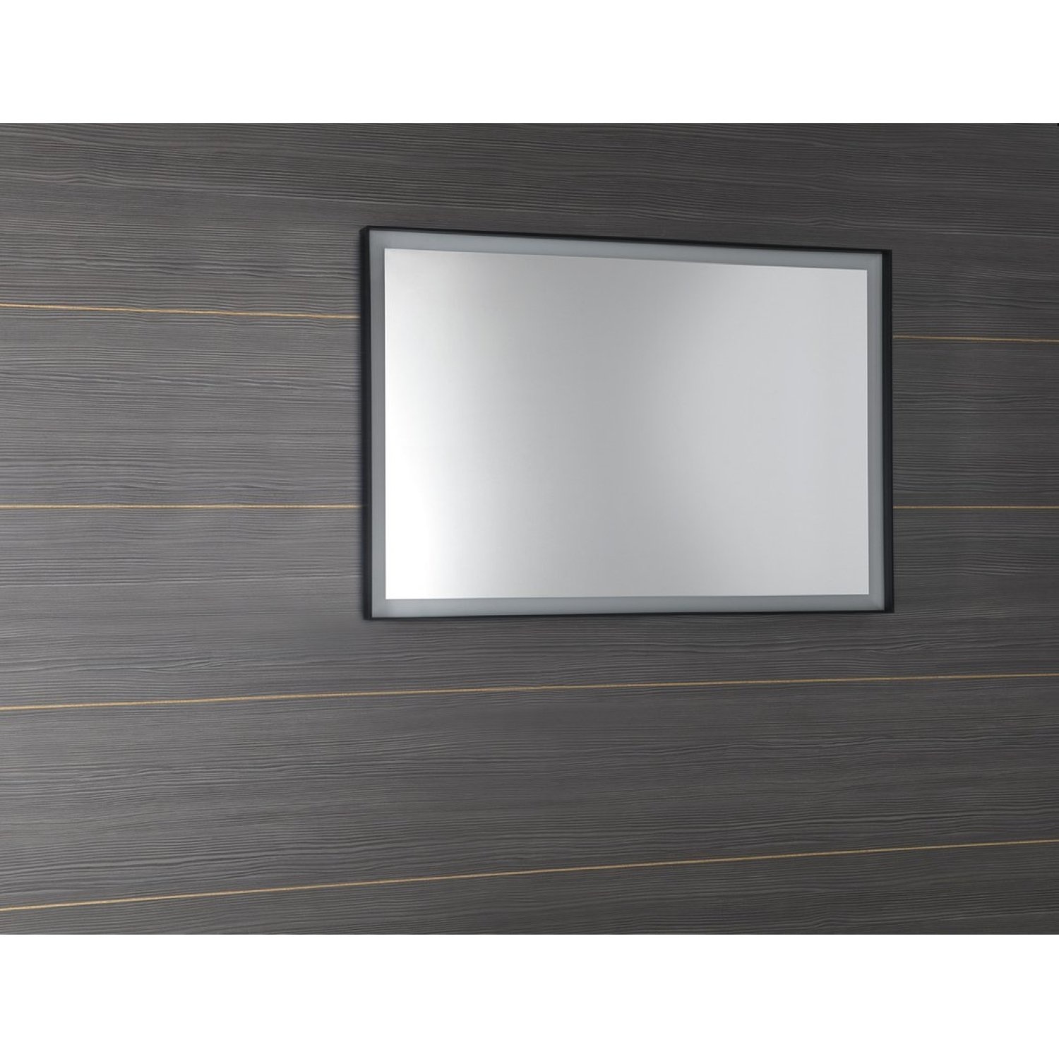 SORT LED's zijn geschuurde randspiegels die worden verlicht door een LED-strip die licht uitstraalt in warm wit. Ze zijn gemonteerd in een metalen frame in een mat zwarte kleur.