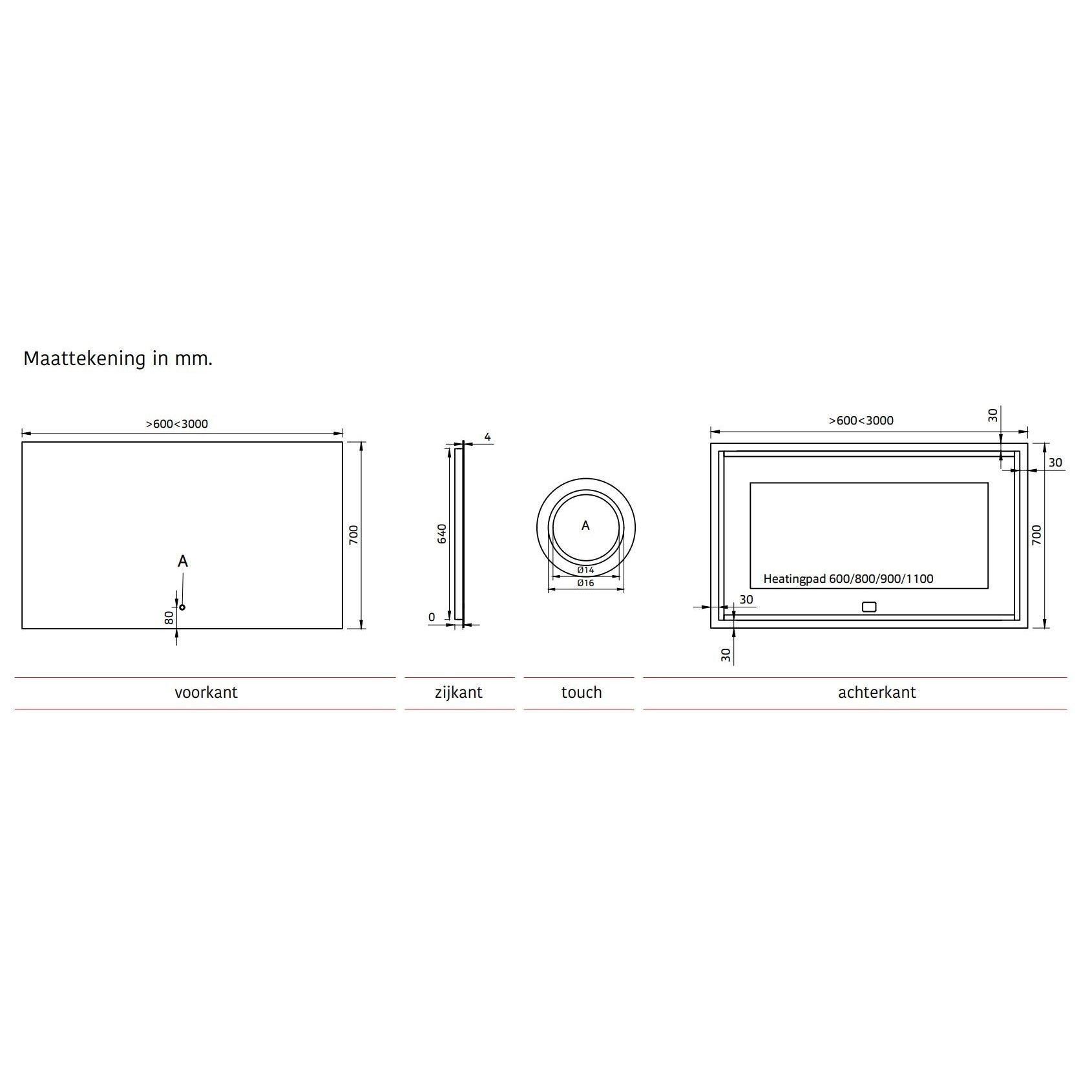 Spiegels met een breedte van 80 cm of groter beschikken over spiegelverwarming.