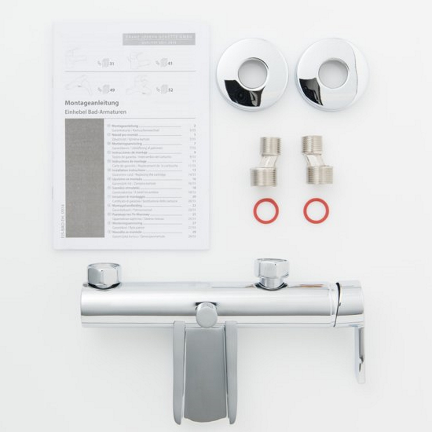 De badkraan is voorzien van keramische schijven, die ervoor zorgen dat het water de juiste temperatuur heeft. Die temperatuur bepaalt uzelf met behulp van de hendel die op de kraan bevestigd is. De kraan wordt geleverd met een geluidloze en uitwisselbare 35 mm-cartouche, twee rozetten en een complete en uitgebreide montagehandleiding.
