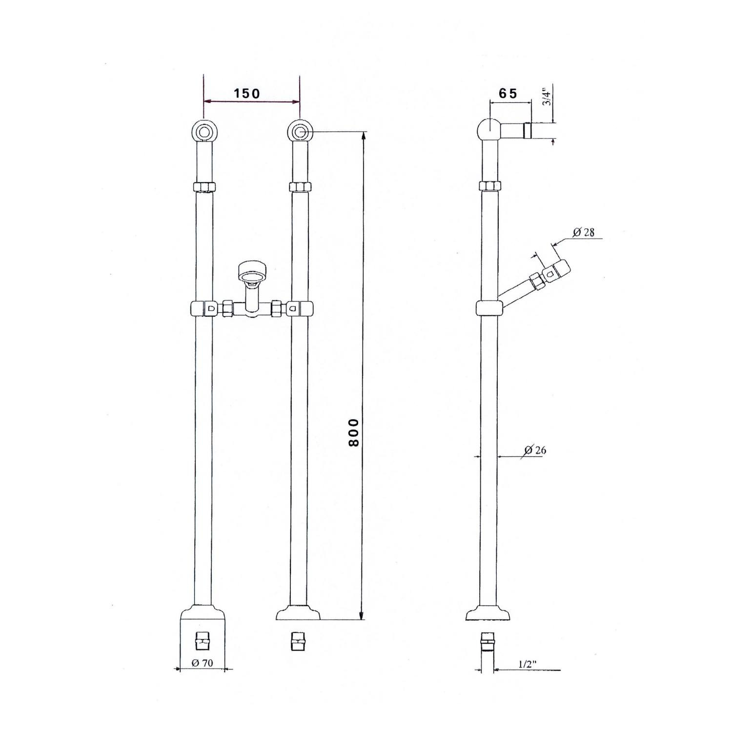Vrijstaande baden zijn tegenwoordig erg populair. Deze vloeraansluiting van Antea kunt u combineren met de antea 3016 badkraan die normaal gesproken aan de wand wordt gemonteerd. U kunt er eventueel ook voor kiezen om een andere soort kraan erop te plaatsen. Let dan goed op bij de draadaansluiting, deze moet namelijk gelijk zijn met de draadaansluiting van deze vloeraansluiting. De vloeraansluiting heeft een lengte van 80 cm en een diameter slang van 2.6 cm.