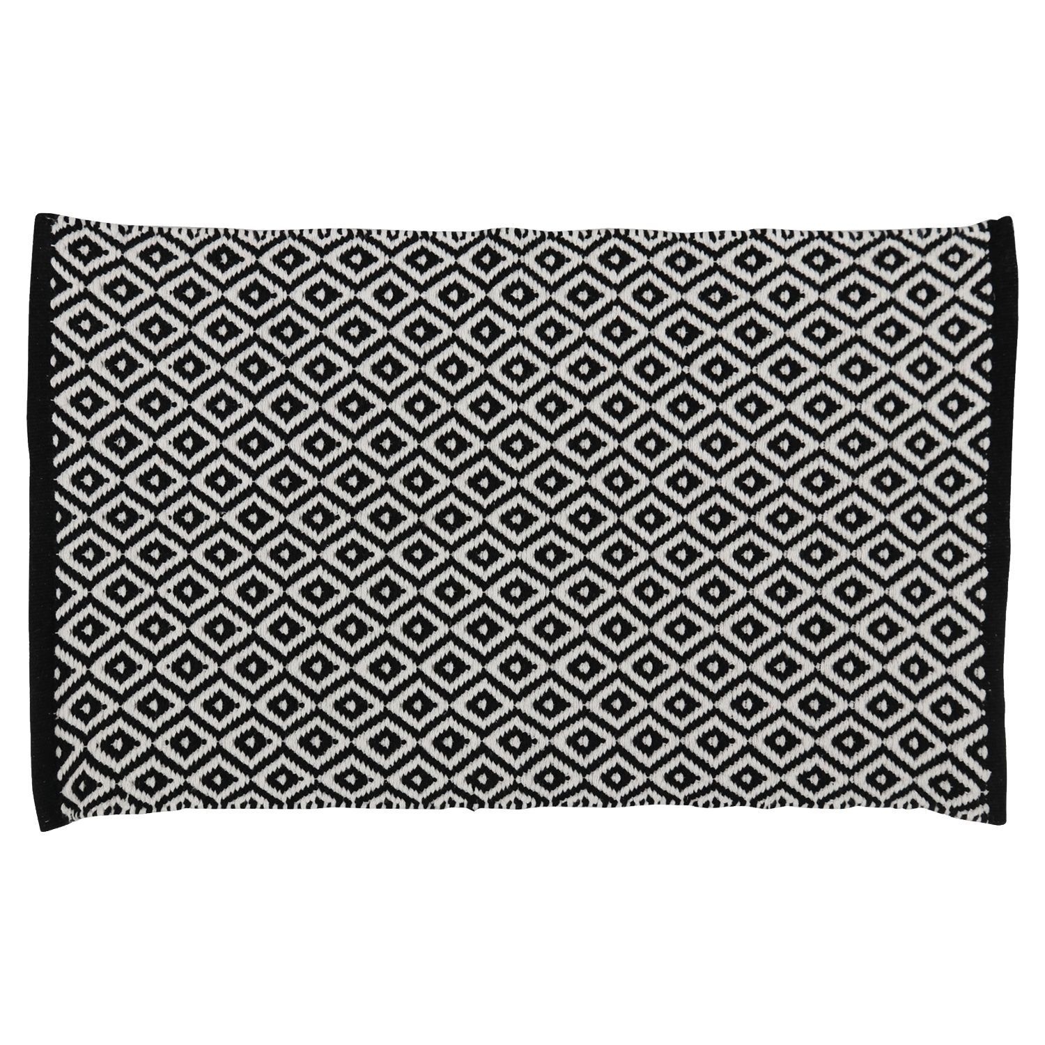 Dit badmatje is gemaakt van 100% katoen met de zwart/witte kleur. Met deze kleuren past deze badmat vrijwel in elke moderne badkamer. Ook heeft deze badmat een interessante diamant patroon, zodat het niet eentonig en saai is.
