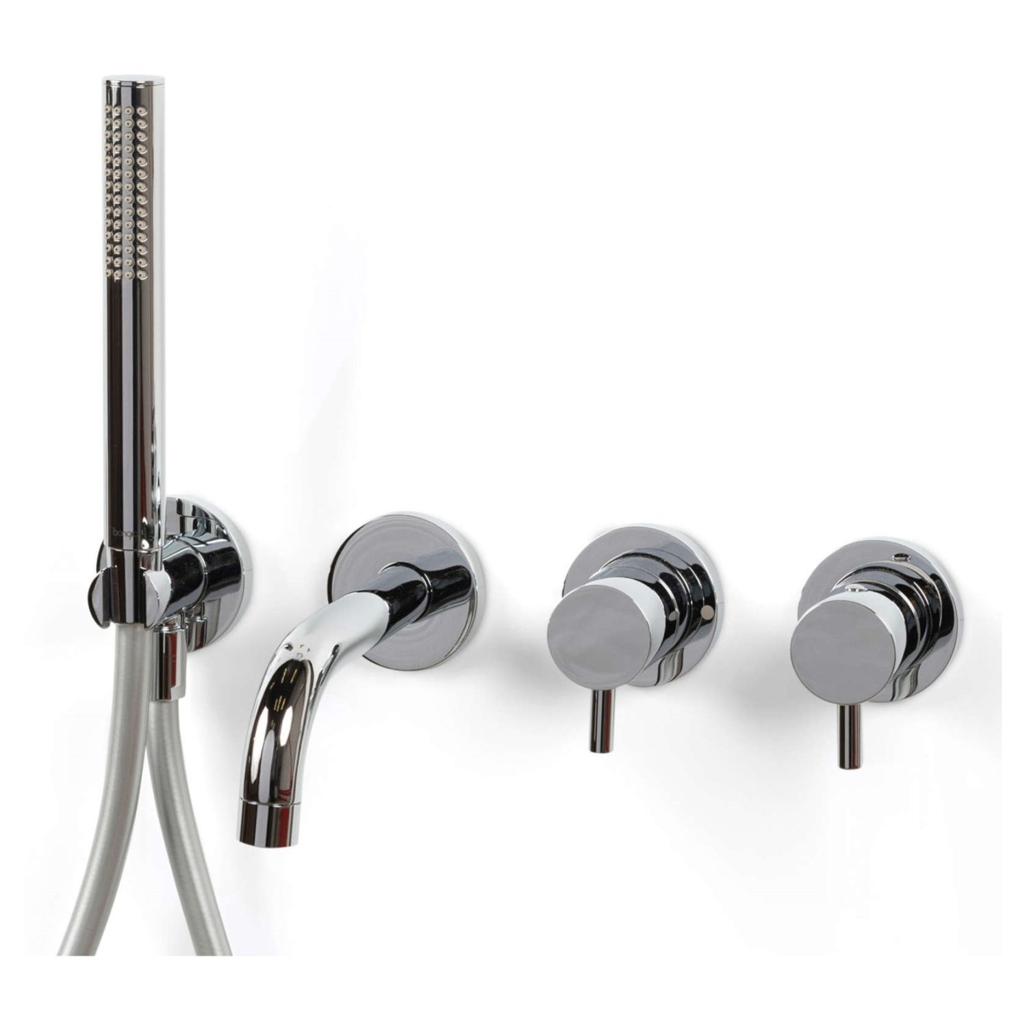 Houdt u van een strakke uitstraling in uw badkamer? Kies dan voor een inbouw badkraan. Omdat een groot deel in de muur verwerkt zit, oogt een inbouwkraan minimalistisch en rustig. Behalve de kranen met 2-weg omstel, zit ook een uitloop en handdoucheset inbegrepen bij de set. Het design is tijdloos en daarom past deze set bij iedere badkamer.