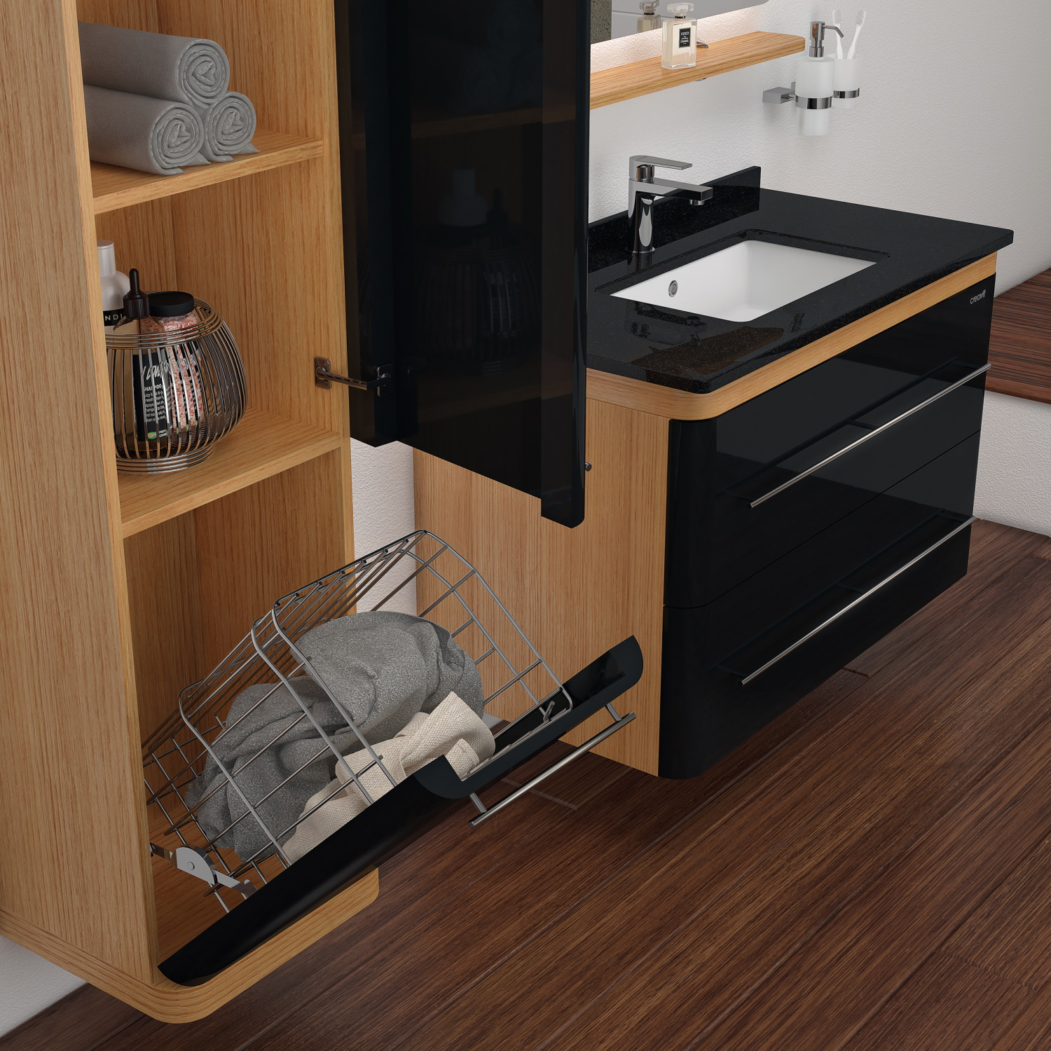 De kolomkast van Boss & Wessing uit de Piano serie past met zijn strakke vormgeving en zwarte front perfect in uw moderne badkamer. Doordat de zwarte fronten worden gecombineerd met een bruin eiken kleurige kast ombouw heeft de kast een warme uitstraling. Door het toevoegen van een hoge kast aan uw badkamer creëert u veel ruimte! Doordat de kast een breedte van 40 cm en een diepte van 35 cm heeft kunt u bijvoorbeeld eenvoudig uw handdoeken opbergen in de kast.