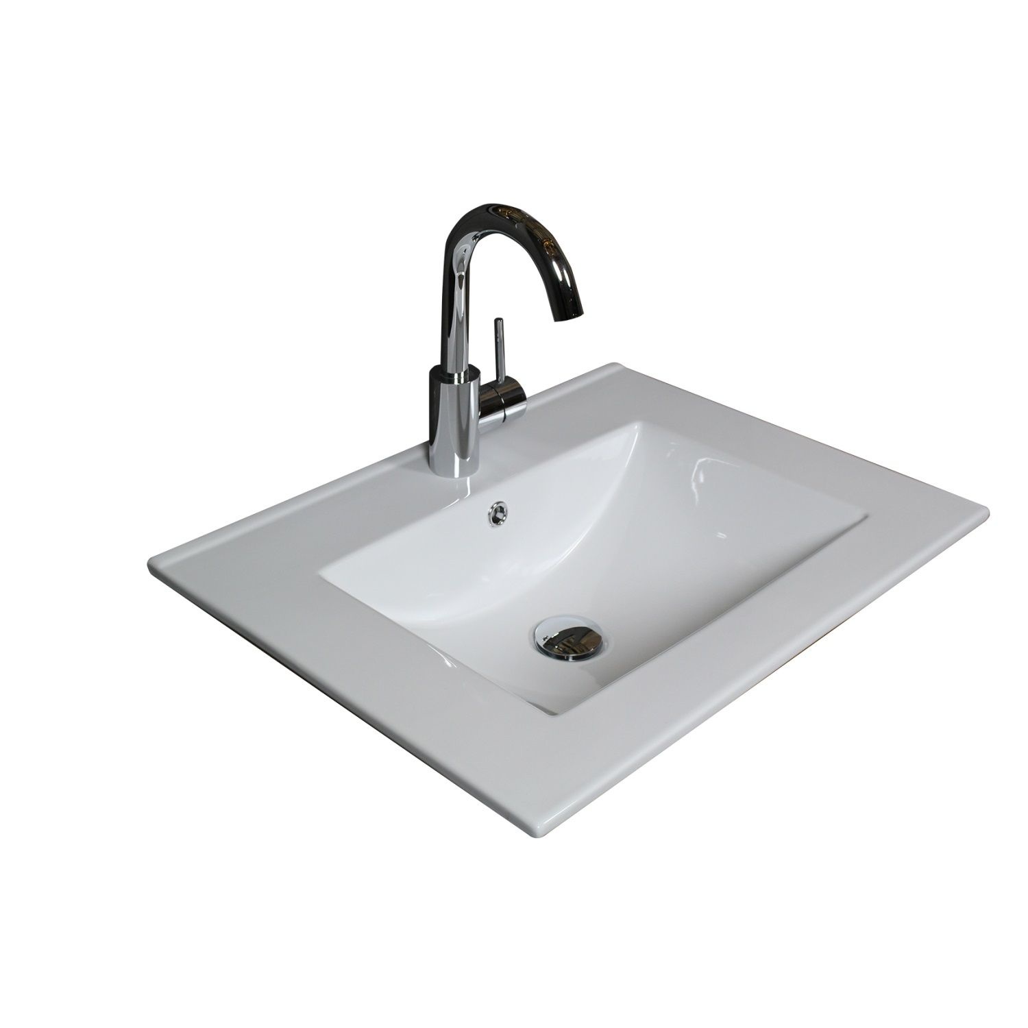 De wastafel zelf heeft dezelfde afmeting als de onderkast namelijk, 60x39 cm met een afvoergat met een diameter van 4,4 cm. De diameter van het kraangat is 3,5 cm. De binnenmaat van deze wastafel is 45x21x12 cm, dit komt omdat er rondom de wasbak ruimte zit.