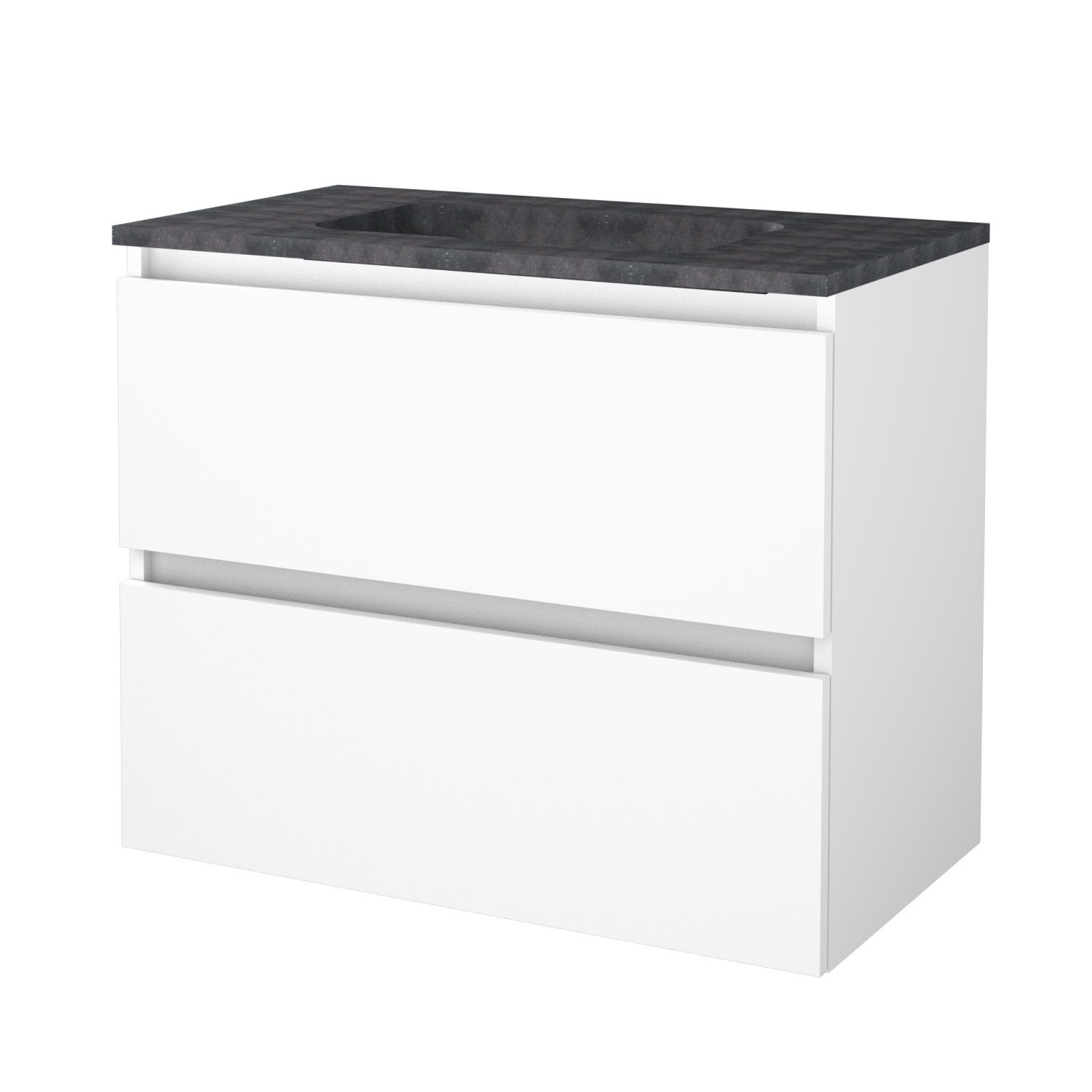 Deze mooie badmeubelset van Aquasplash komt uit de serie Salt, hij is gemaakt van MDF in de kleur Ice White. De hoogte van dit meubel is 65 cm, de breedte van dit meubel is 80 cm en de diepte is 46 cm. De wastafel die in deze set zit is gemaakt van Hardsteen in een zwarte/grijze kleur.