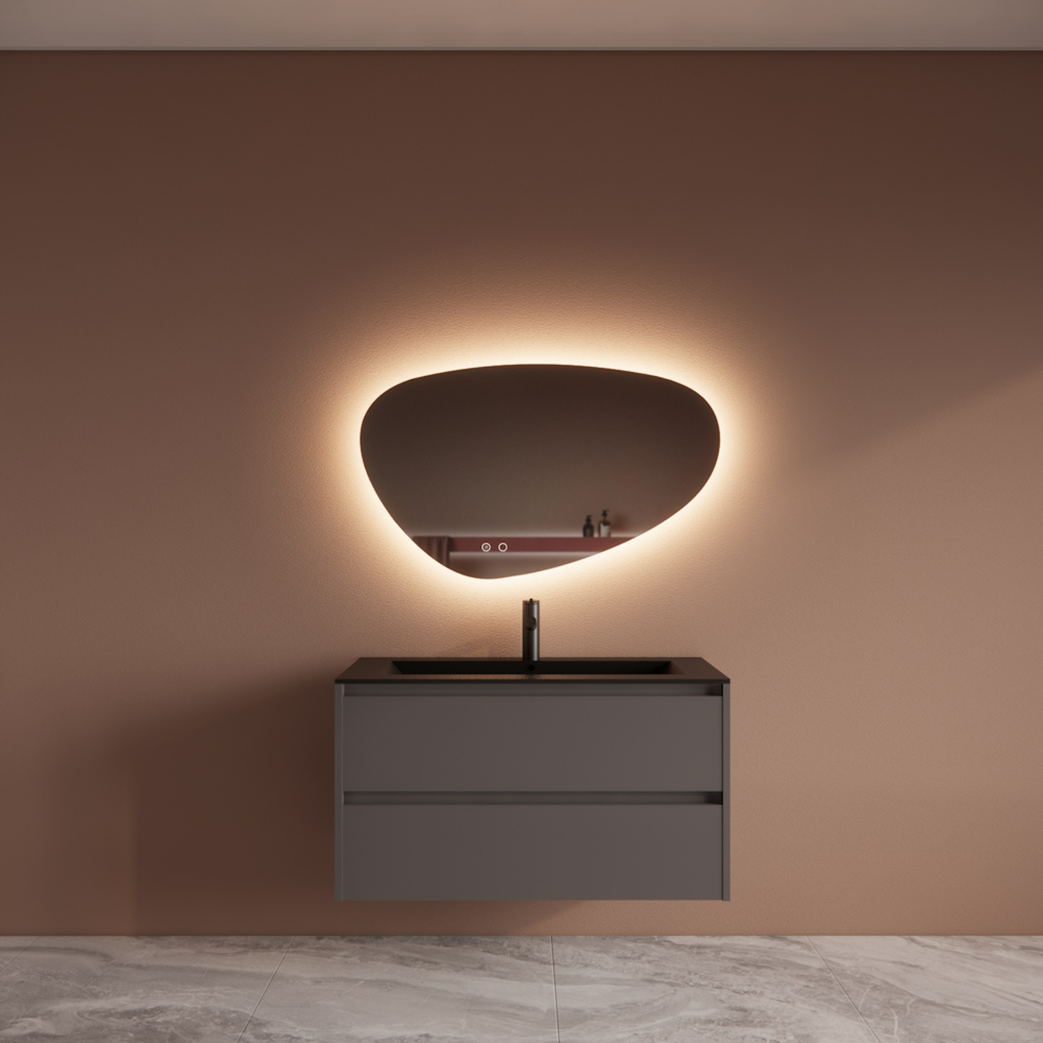 De onderkast van het meubel is gemaakt van 18 mm Melamine plaat (FSC Gekeurd). De twee lades van dit badkamermeubel zijn uitgevoerd met een soft-close techniek. Dit houd in dat wanneer de lade wordt gesloten, deze automatisch wordt afgeremd en zelf automatisch rustig sluit. Deze onderkast wordt voorgemonteerd geleverd.