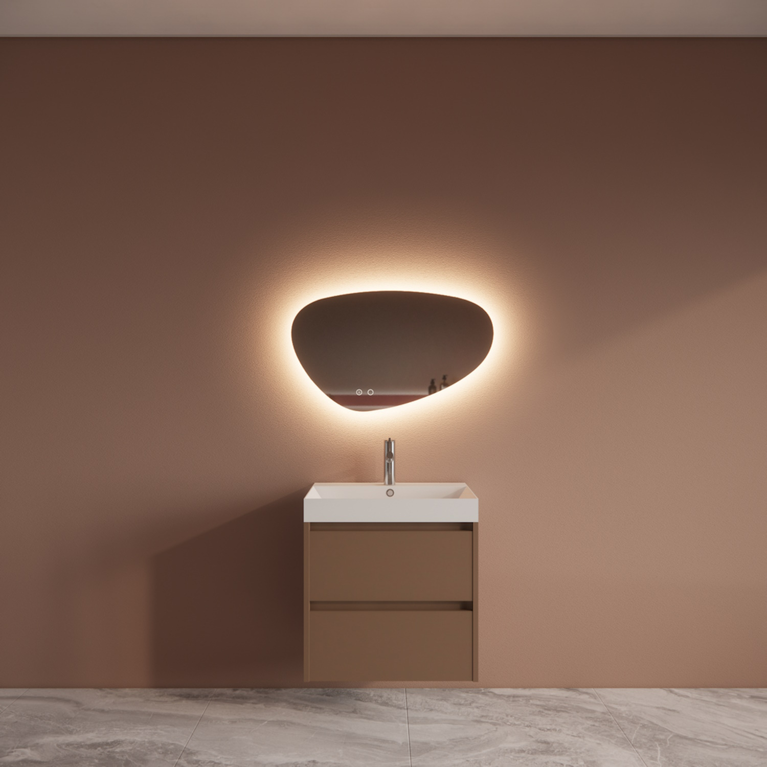 De onderkast van het meubel is gemaakt van 18 mm Melamine plaat (FSC Gekeurd). De twee lades van dit badkamermeubel zijn uitgevoerd met een soft-close techniek. Dit houd in dat wanneer de lade wordt gesloten, deze automatisch wordt afgeremd en zelf automatisch rustig sluit. Deze onderkast wordt voorgemonteerd geleverd.
