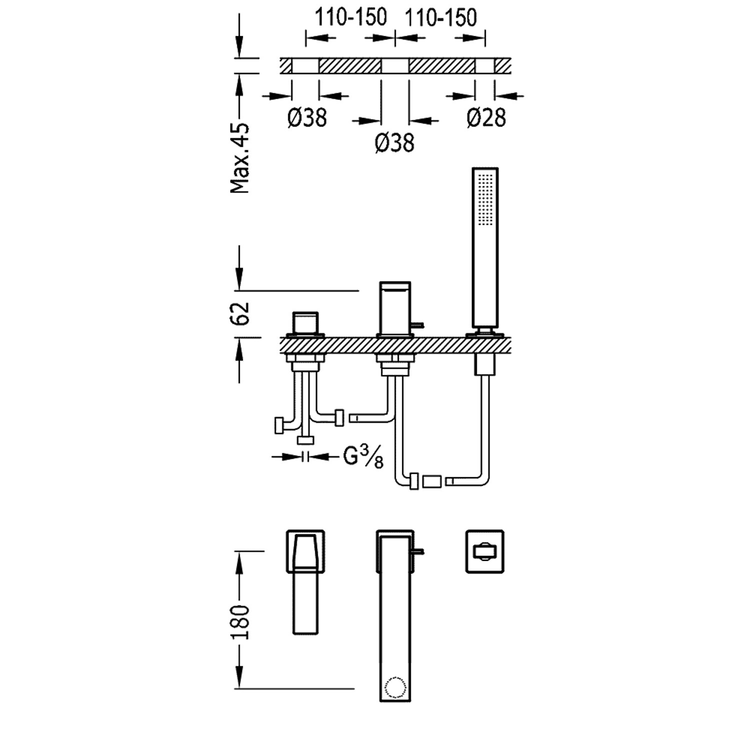 Houdt u van minimalisme en rust? Kies dan voor een badrandkraan in de kleur mat wit. Dit oogt strak, modern en rustig. De set heeft een hoekig design, wat hem een robuuste look geeft. De uitloop heeft een lengte van 18 cm. De H.O.H. afstand tussen de hendel, uitloop en de handdouche zijn verstelbaar van 11 tot 15 cm.