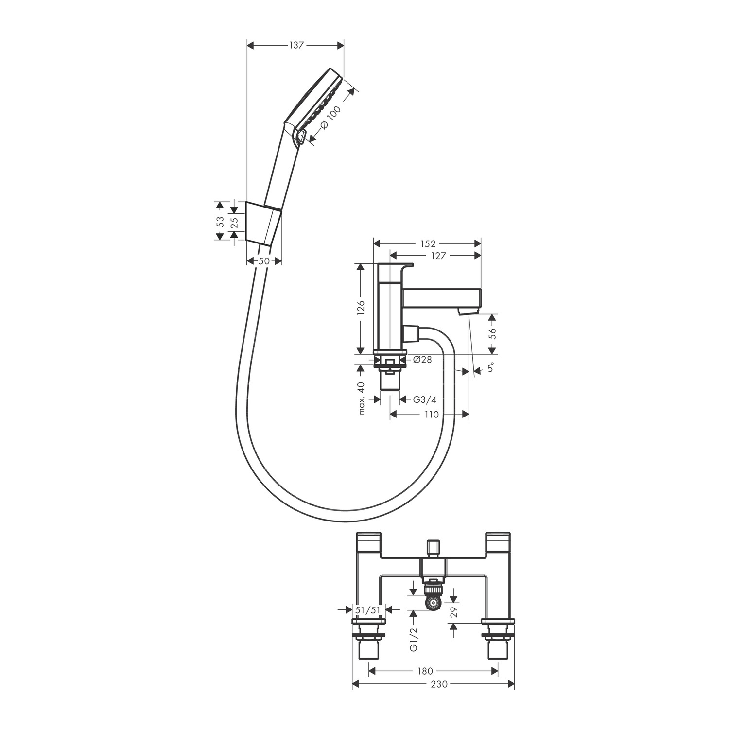 Geniet van een heerlijk bad met deze badrandmengkraan met handdouche. De badkraan komt uit de Vernis Shape collectie van HansGrohe. U monteert de kraan op het rand van uw bad. Met de handige omstelknop kunt u bepalen of u het water uit de baduitloop laat stromen of doorstuurt naar de handdouche via de doucheslang. De doucheslang en handdouche zitten ook inbegrepen in deze set. De doucheslang heeft een lengte van 160 cm en sluit u aan de onderkant van de badkrandkraan aan. De Vario Handdouche bevat 2 heerlijke straalsoorten waar u uit kunt kiezen. Geniet van een fijne ontspannende Rain straal. Of kies voor de IntenseRain voor een krachtigere straal om bijvoorbeeld shampoo uit te spoelen. U bepaalt de straalsoort door aan de straalplaat te draaien. Verder ontvangt u ook een handdouche houder zodat u uw handdouche altijd kwijt kunt!