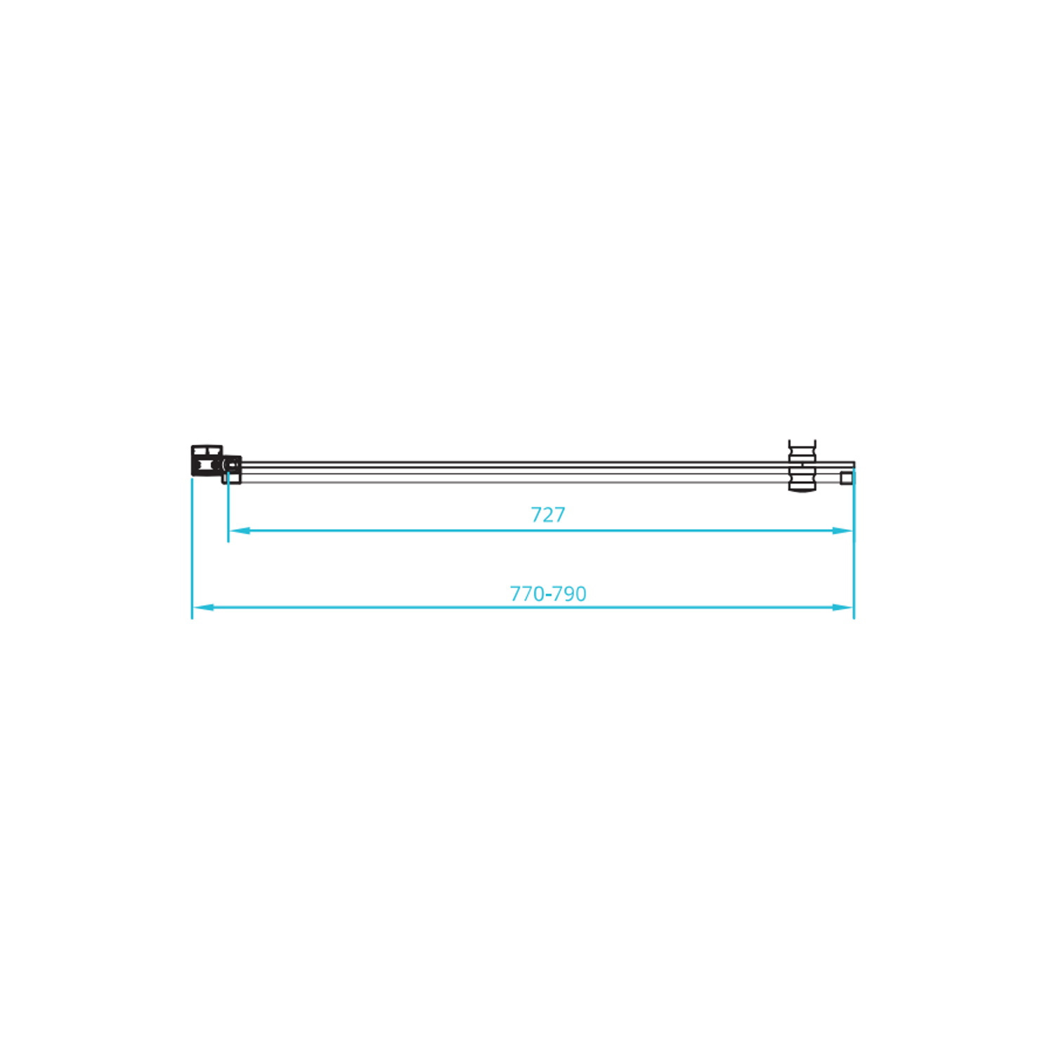 De badwand is heeft een verstelbaarheid van 77 tot 79 cm.