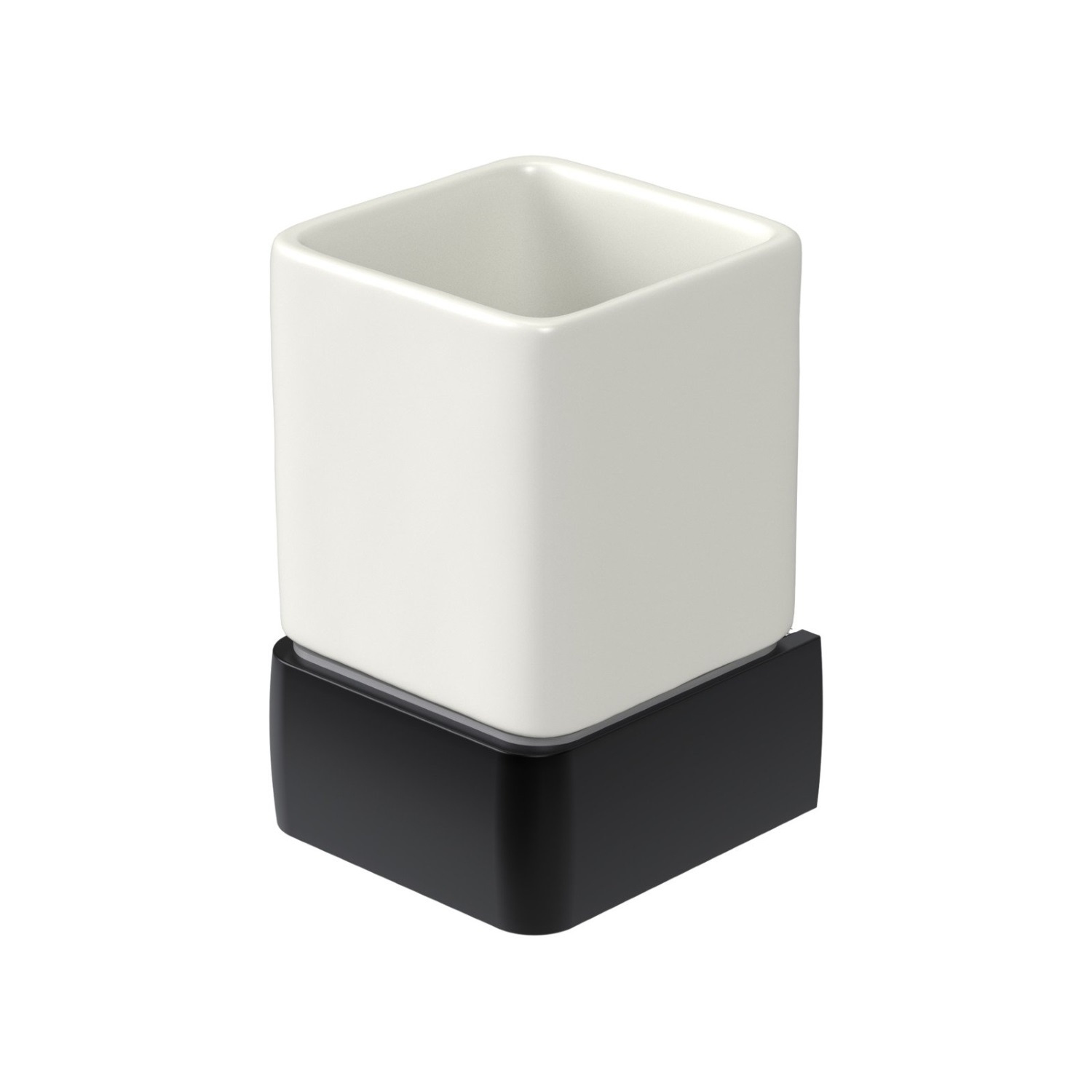 Deze bekerhouder van het populaire badkamermerk Haceka behoort tot de serie 'Aline Black'. De houder is gemaakt van aluminium en is afgewerkt in de kleur mat zwart. De vierkante, witte beker zelf sluit naadloos aan op deze houder en is gemaakt van keramiek. Het artikel heeft een breedte van 7,4 cm en een hoogte van 11,4 cm.