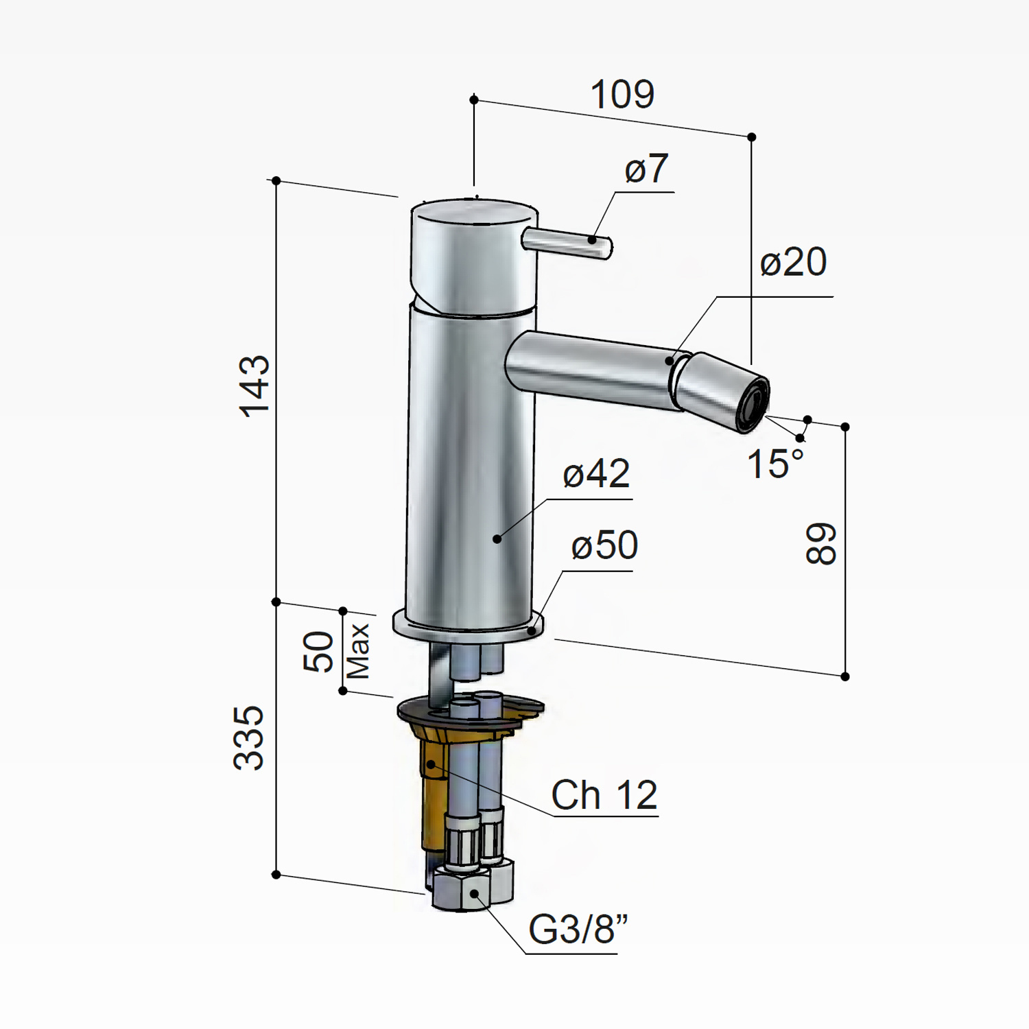 De bidetkraan heeft een Chroom kleur en is een duurzaam oppervlaktemateriaal dat goed bestand is tegen krassen. Het toepassen van Chroom op messing geeft een bijzondere uitstraling die luxe en duurzaamheid uitstraalt.