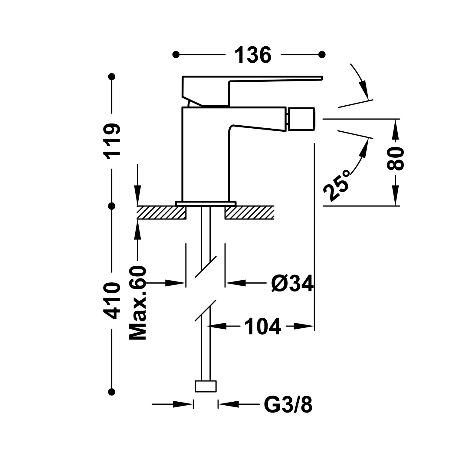 Een bidetkraan herken je door de korte en vaak horizontale uitloop en richtbare uitloop. De kraan is zo gemaakt dat je de waterdruk en de richting en hoek van water zelf kunt regelen. De kraan is 11.9 cm hoog en 13.6 cm diep. De uitloop is slechts 8 cm hoog.