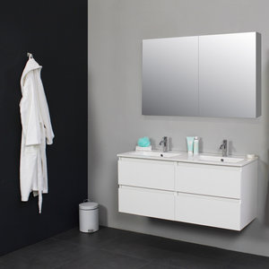 Badkamermeubel BWS Pepper Wastafel Porselein 2 Kraangaten Spiegelkast 120x55x46 cm Wit