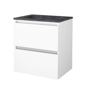 Badmeubelset Aquasplash Salt 60x46cm Greeploos 2 Lades Met Wastafel Hardsteen 1 Kraangat Ice White