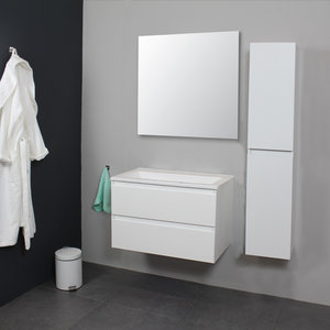 Badkamermeubel Boss & Wessing Pepper Acryl Wastafel Incl Spiegel Zonder Kraangat 80x55x46 cm Wit