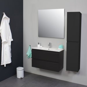 Badkamermeubel Boss & Wessing Pepper Wastafel Porselein Incl Spiegel En Kraangat 80x55x46 cm Antraciet