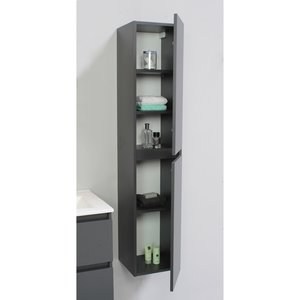 Badmeubelkast Boss & Wessing Pepper Hoge Kast Greeploos 2 Deuren 145x30x30 cm Antraciet