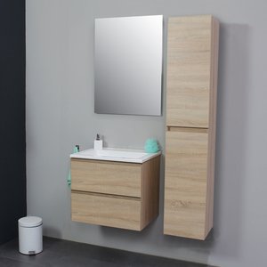 Badkamermeubel Boss & Wessing Pepper Acryl Wastafel Zonder Kraangat Inclusief Spiegel 60x55x46 cm Eiken
