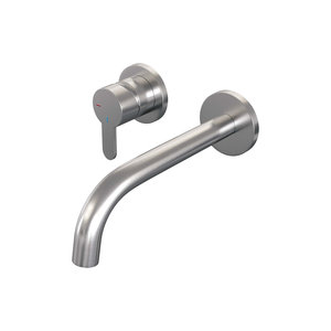 Inbouw Wastafelmengkraan Brauer Brushed Edition Coldstart Gebogen Uitloop Halfronde Hendel Links Geborsteld RVS PVD Met Afdekplaat