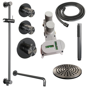 Regendoucheset Inbouw Brauer Gunmetal Edition Thermostatisch 30cm met 3-Weg Omstelling, Wandarm en 3-Standen Handdouche Geborsteld Gunmetal