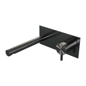 Inbouw Wastafelmengkraan Brauer Gunmetal Edition Coldstart Gebogen Uitloop Platte Hendel Links Geborsteld Gunmetal PVD Met Afdekplaat