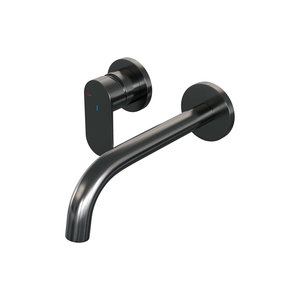 Inbouw Wastafelmengkraan Brauer Gunmetal Edition Coldstart Gebogen Uitloop Ronde Hendel Links Geborsteld Gunmetal PVD Met Afdekplaat