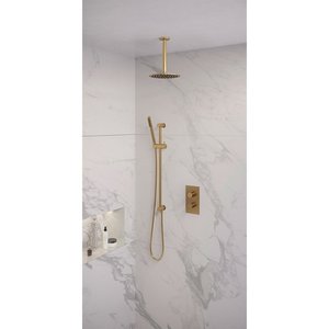 Regendoucheset Inbouw Brauer Gold Edition Thermostatisch 30cm met 3-Weg Omstelling, Plafondarm en Staaf Handdouche Geborsteld Goud