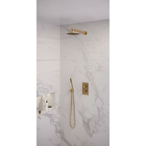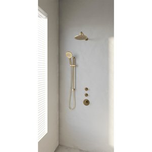 Regendoucheset Inbouw Brauer Gold Edition Thermostatisch 30cm met Wandarm en Handdouche 3-Standen Losse Stopkranen Geborsteld Goud