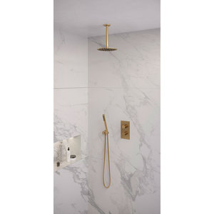 Regendoucheset Inbouw Brauer Gold Edition Thermostatisch 30cm met 3-Weg Omstelling, Gebogen Wandarm ...