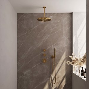 Regendoucheset Inbouw Brauer Gold Edition Thermostatisch 30cm met Plafondarm en Handdouche 3-Standen Losse Stopkranen Geborsteld Goud