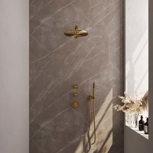 Regendoucheset Inbouw Brauer Gold Edition Thermostatisch 30cm met Wandarm en Handdouche Staaf Losse Stopkranen Geborsteld Goud